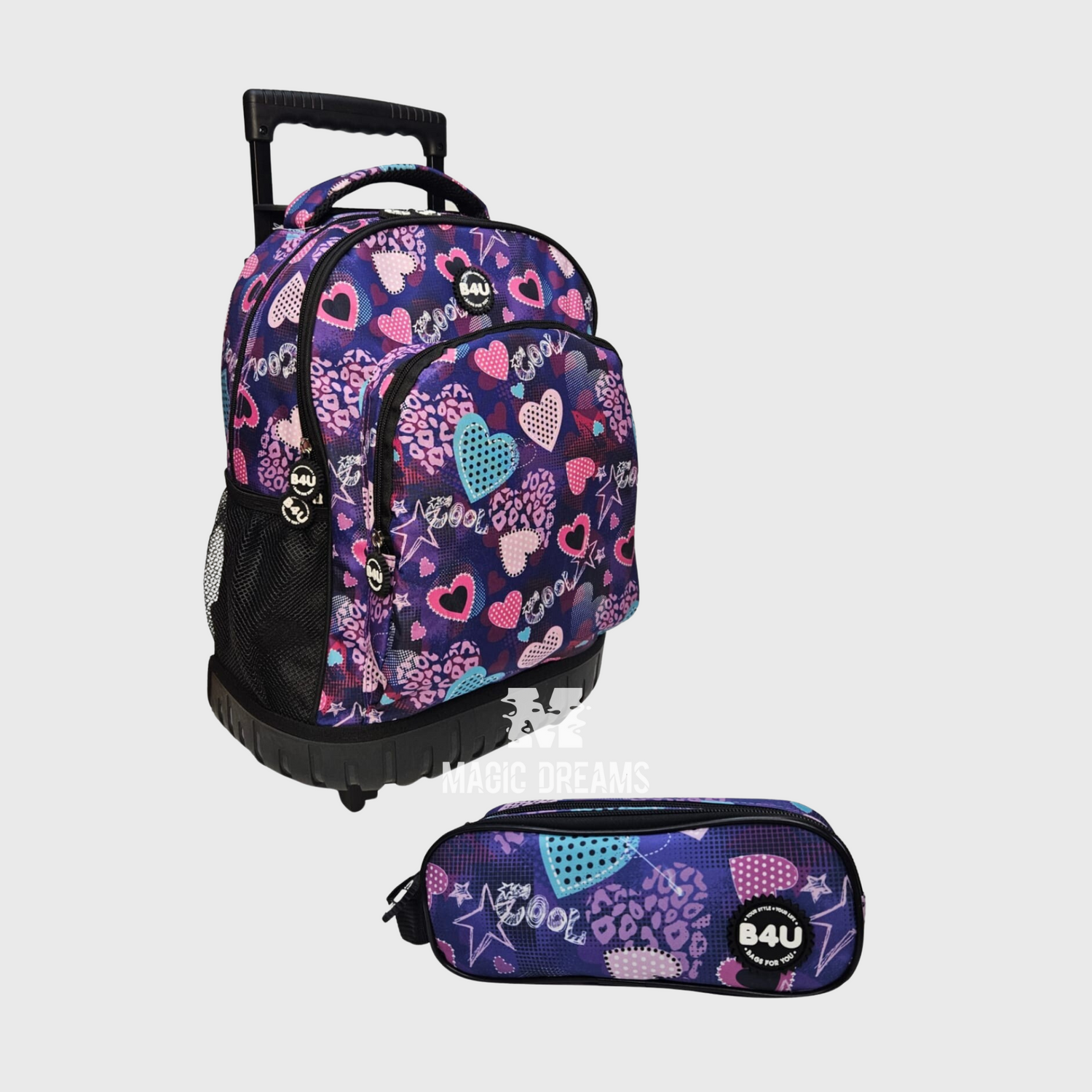 Conjunto de Mochila Escolar Trolley Cool 44cm com Estojo Duplo para menina.