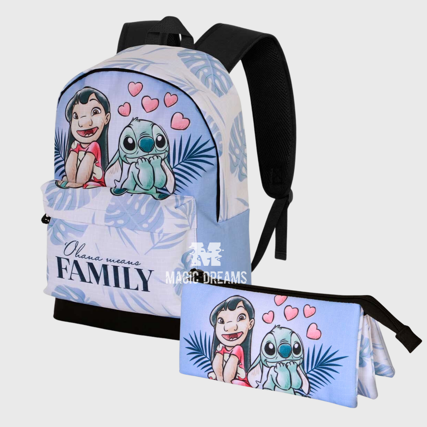 Conjunto Escolar Mochila Stitch Couple 44cm + Estojo Triplo