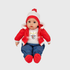 Vem vestido com roupinha oficial temática do SL Benfica, incluindo gorro personalizado, tornando-o perfeito para fãs do clube.